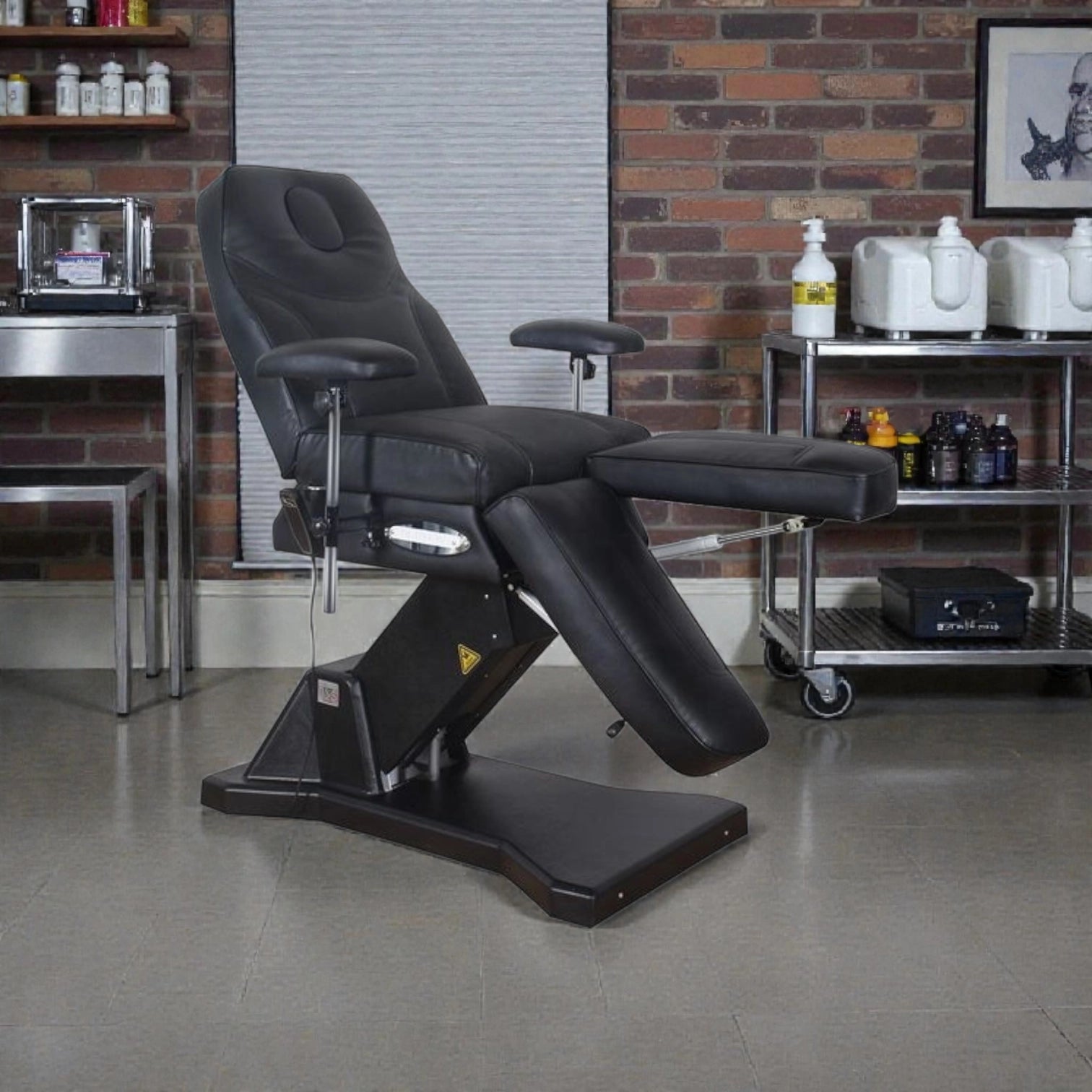 The stable metal base ensures safety and balance, while adjustable armrests and head support allow customization for different body types and treatment needs.