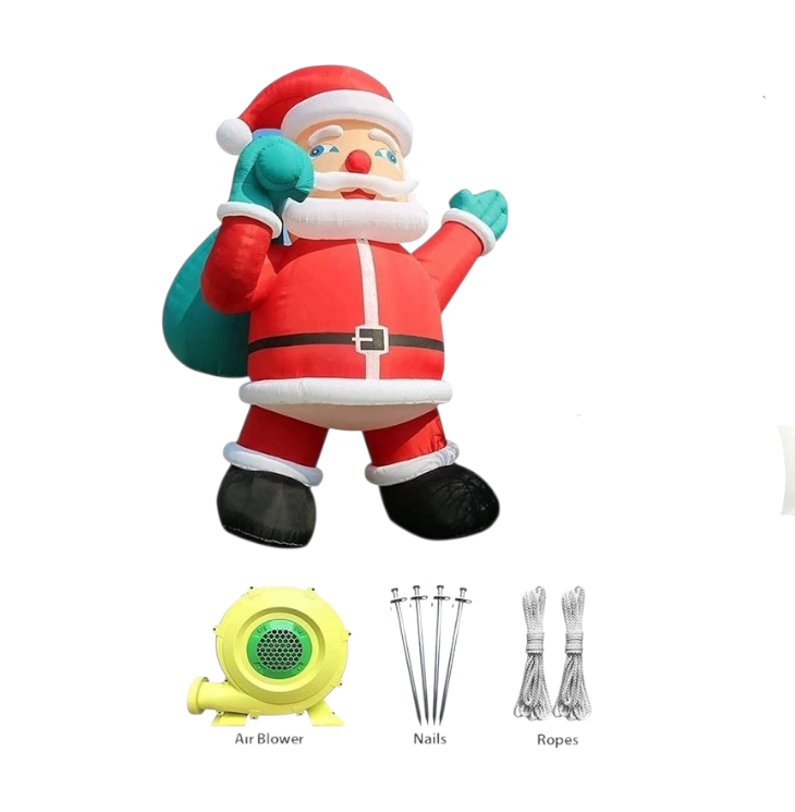 - Extra-large inflatable Santa with detailed design and gift bag