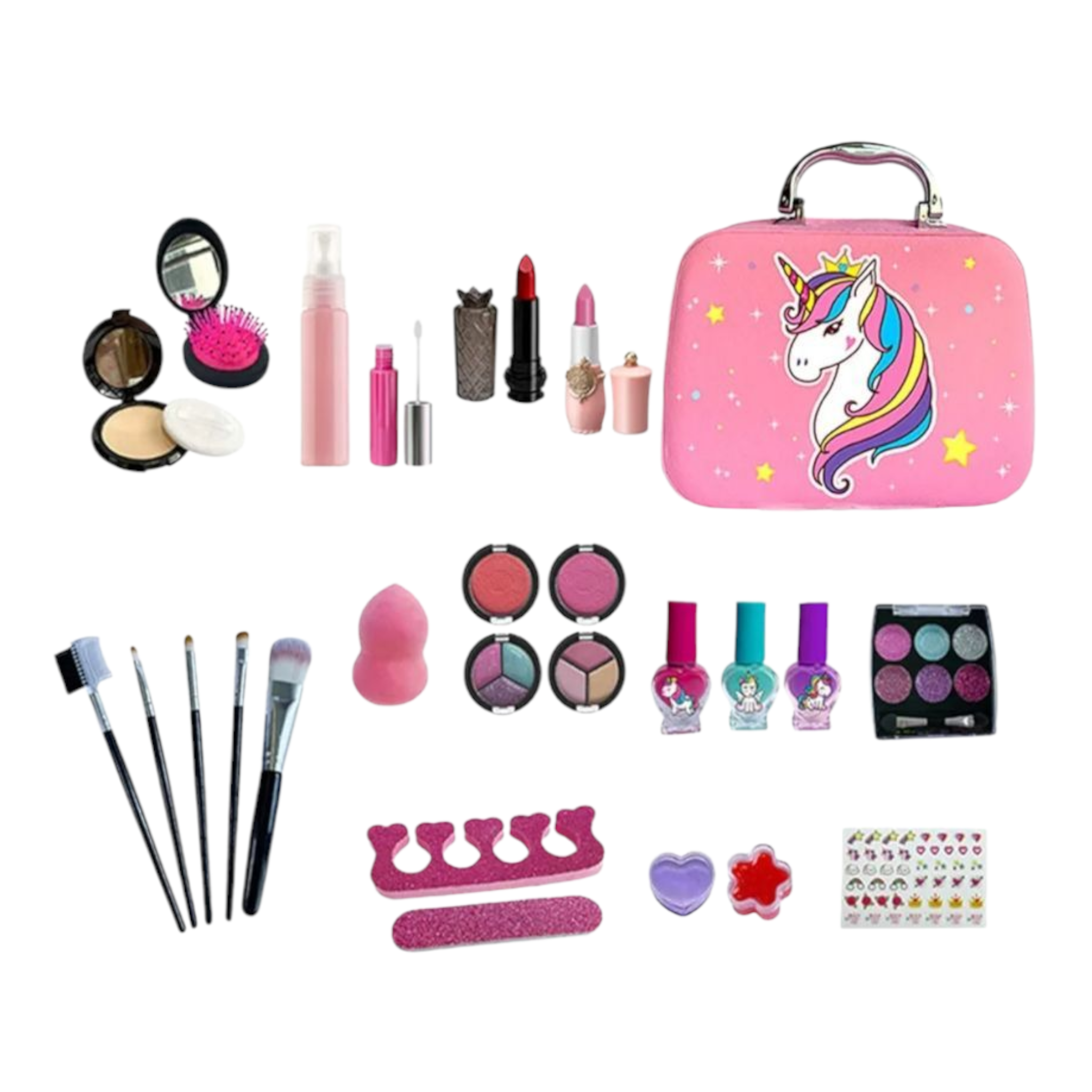 Looking for the perfect gift for a little girl who dreams of her first makeup kit? This playful unicorn-themed kids’ makeup set is safe, washable, and designed for little princesses who love styling and role play.