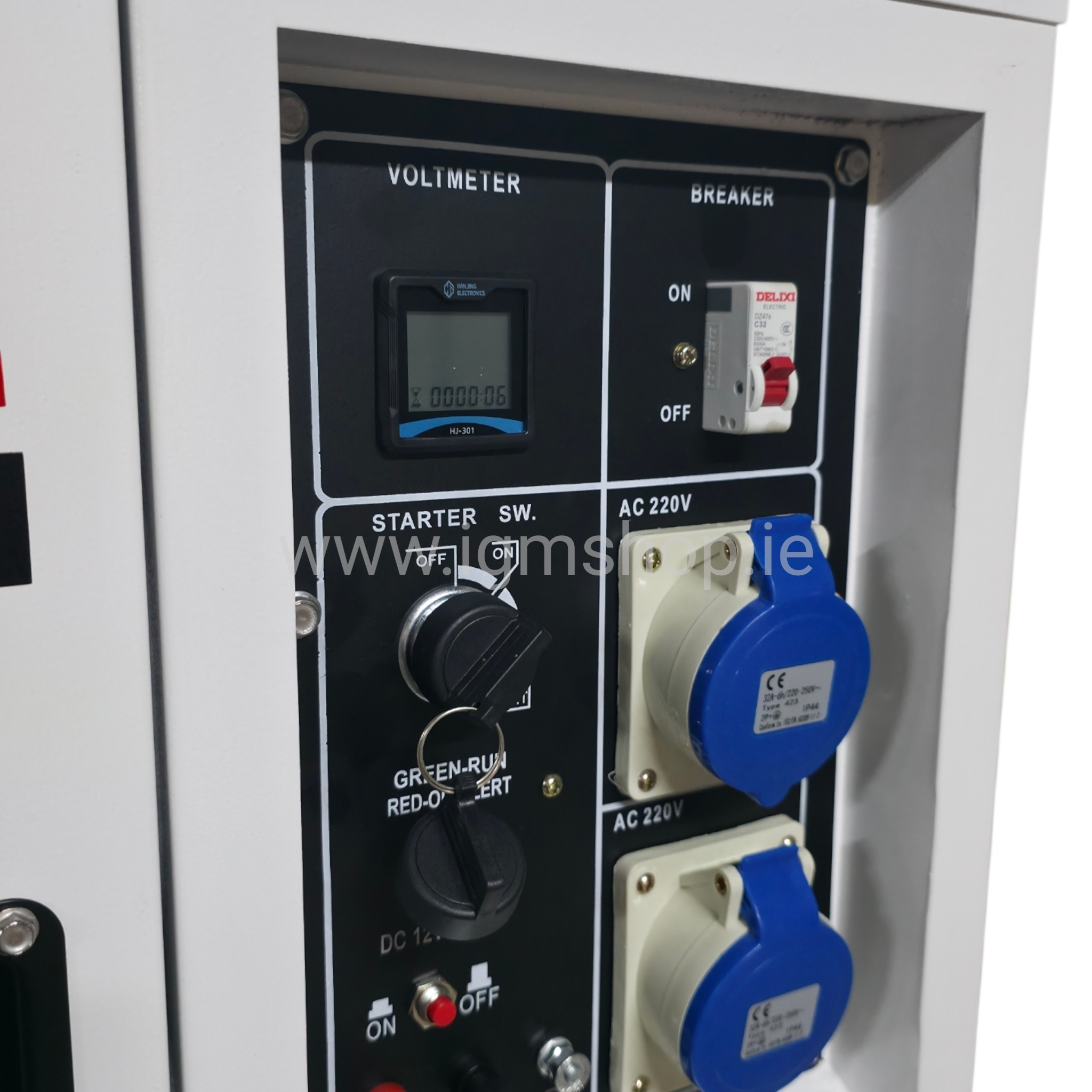 This model is equipped with an automatic voltage regulation system (AVR), a durable air-cooled diesel engine, and a user-friendly control panel with all essential protection features.